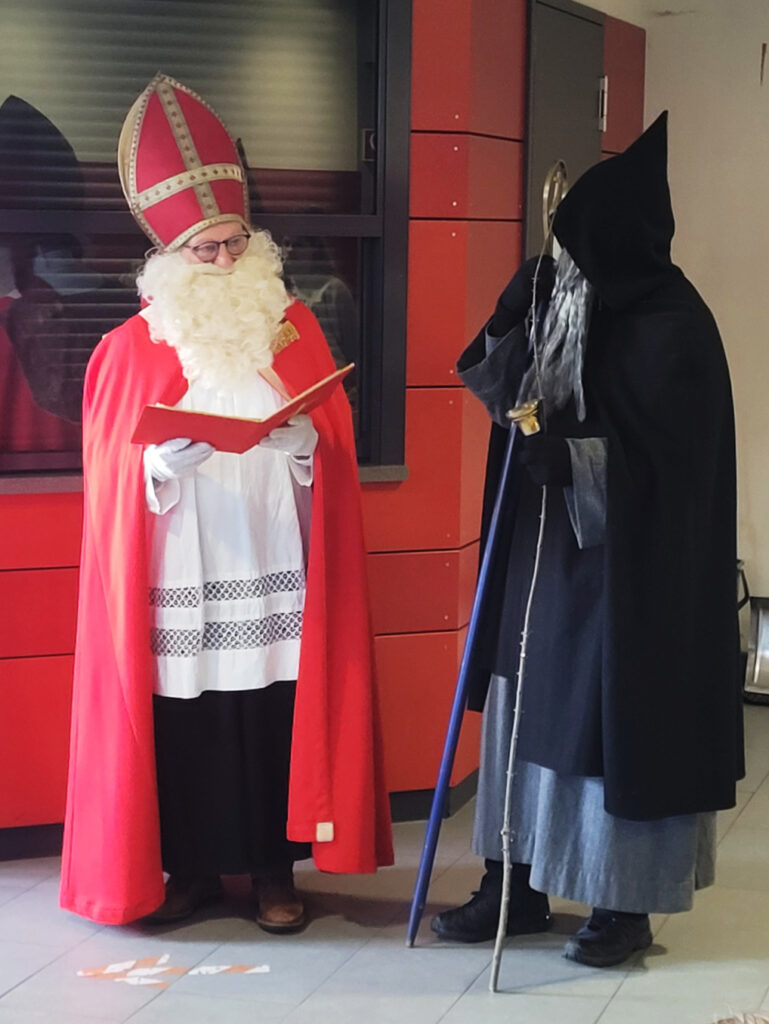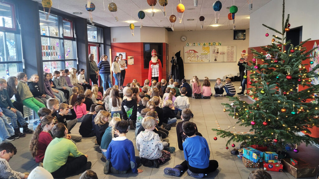 Dieses Jahr hatte der Nikolaus etwas Verspätung: Weil der Nikolaustag auf einen Samstag fiel und am Montag darauf der Schulausflug ins Theater anstand, kamen Nikolaus und Knecht Rubrecht erst am 9. Dezember in die Schule.